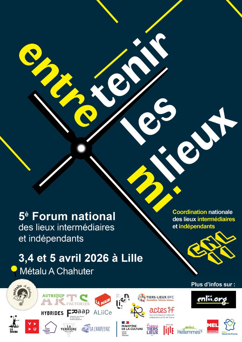 La Coordination Nationale des Lieux Intermédiaires et Indépendants vous donne rendez-vous pour le 5ᵉ Forum national des Lieux Intermédiaires et Indépendants, les 3, 4 et 5 avril 2026 à Lille !